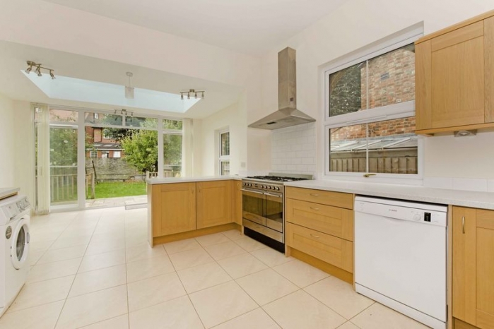 The property further comprises a large sized modern fully fitted eat in kitchen with direct access to a private south facing rear garden and wood flooring. The property also benefits from off street parking for 2 cars and is ideally located within a quarter mile radius of Hampstead Heath and access to the excellent transport facilities of the Finchley Road and Hampstead (Northern Line).