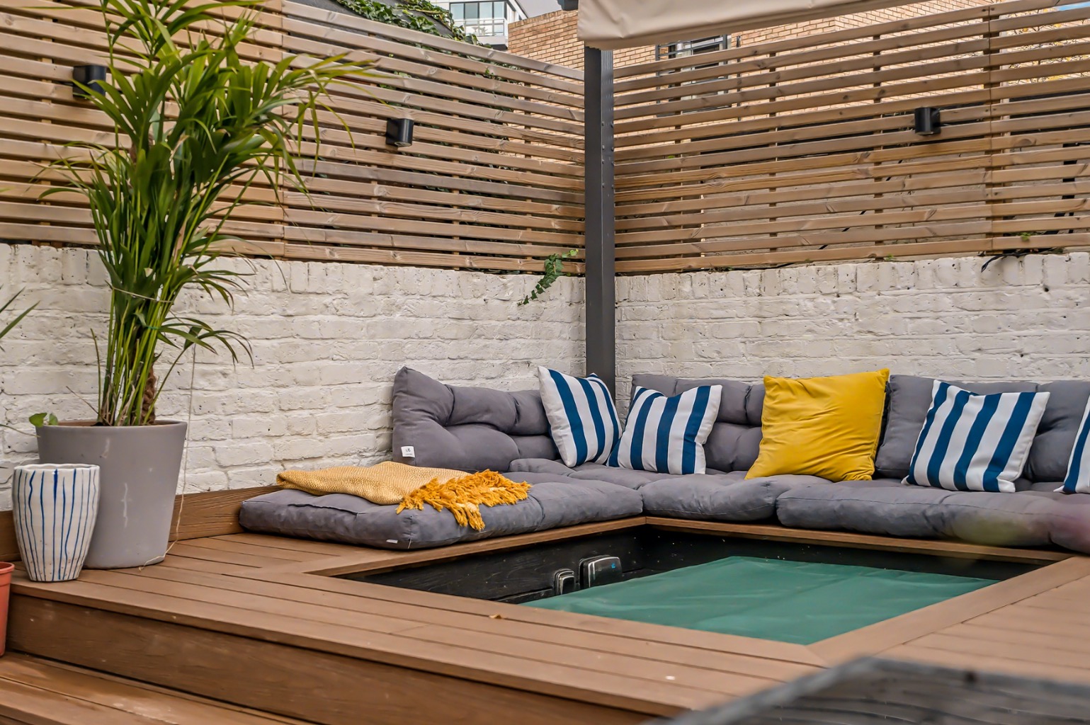 Located just moments from all local amenities, this charming home is rich in period details and has been lovingly renovated by the current owners. The highlight of the property is the gorgeous east-facing garden, featuring a seating area and hot tub set within a space of composite decking and a pergola structure with a retractable awning—perfect for much-needed shade during the summer months.
