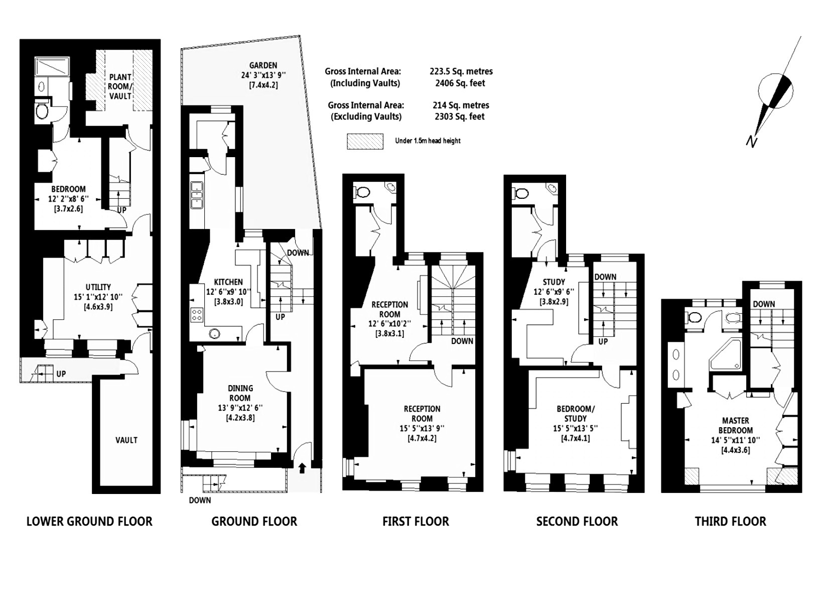 This substantial townhouse boasts five well-proportioned bedrooms, providing an abundance of private sanctuaries for residents and guests alike. Each bedroom is designed with comfort and style in mind, offering a tranquil escape from the bustling city life just beyond its doors. Complementing these sleeping quarters are four beautifully appointed bathrooms, featuring contemporary fixtures and fittings, ensuring convenience and luxury for all occupants. The thoughtful layout and design of these facilities underscore the property’s commitment to high-end living.