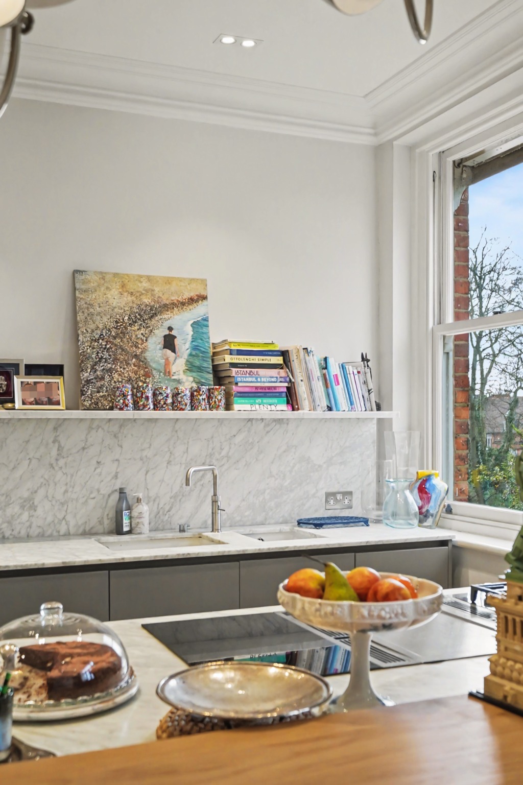 The standout feature is the front-to-back double reception room and kitchen, running the full depth of the building. With windows to both elevations, natural light pours in from morning through to late afternoon — even in winter, there is little need for artificial lighting during the day. It’s a wonderfully balanced entertaining and living space that feels both open and calm.