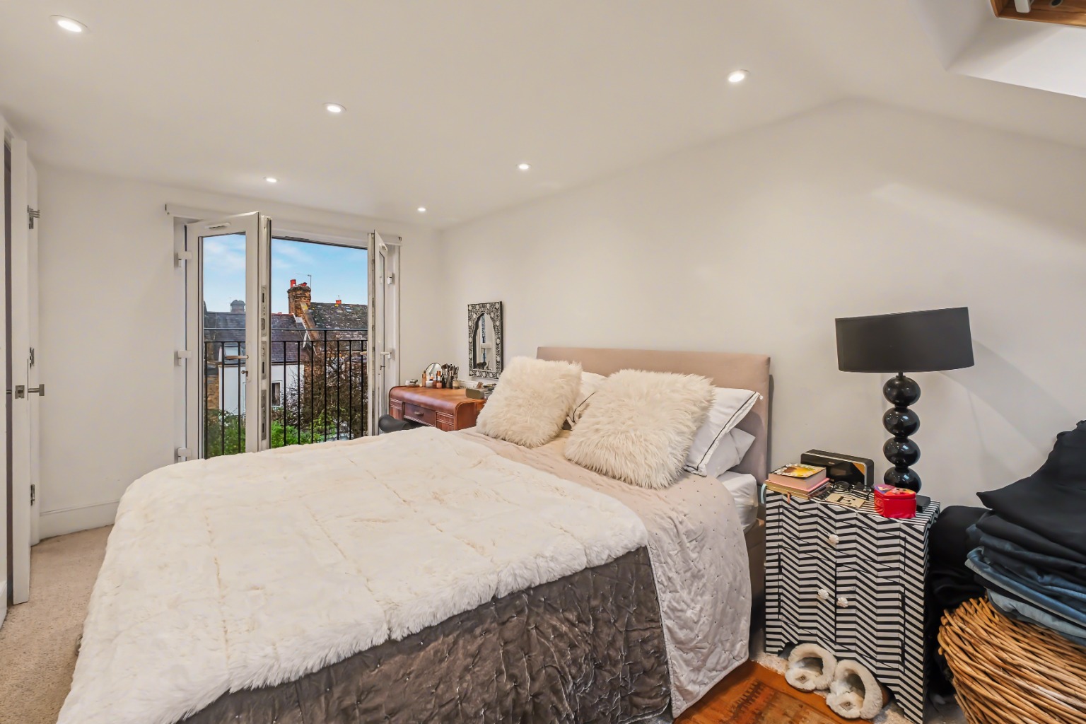 On the first floor, there are three generously sized double bedrooms and a family bathroom. The loft conversion provides a spacious principal bedroom with an en suite shower room, a Juliet balcony, and extensive eaves storage.