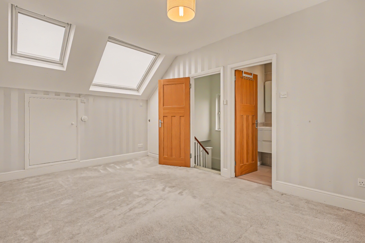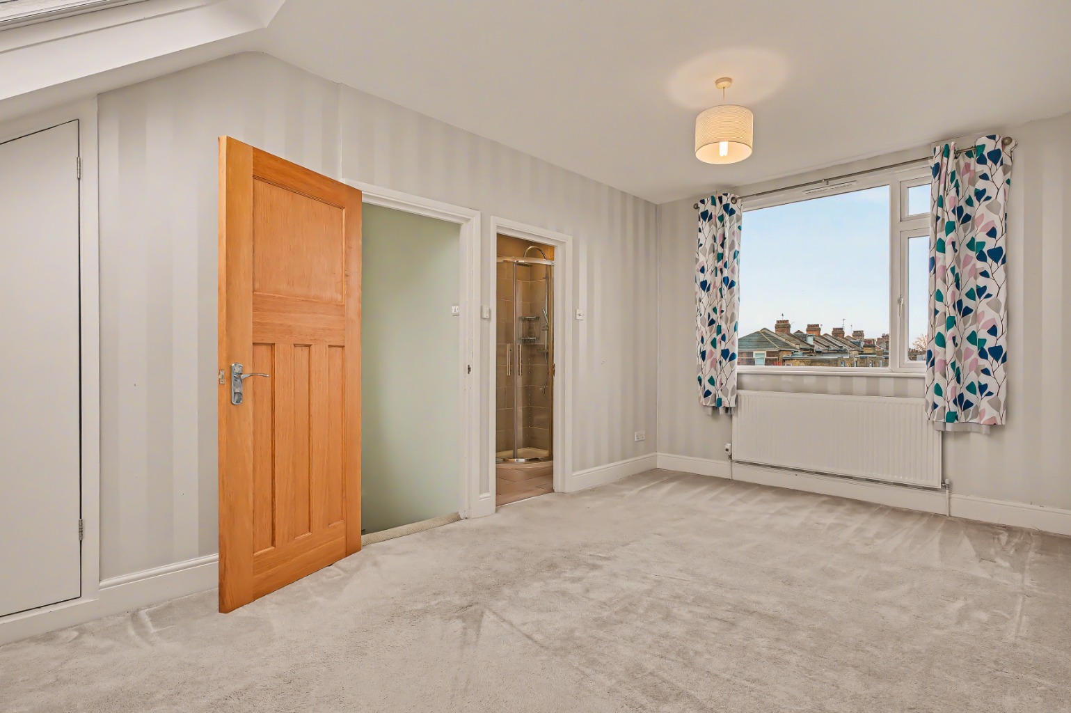 On the first floor, there are two large double bedrooms, a single bedroom, and a family bathroom. The second floor hosts the principal bedroom, complete with an en suite shower room and a large south facing window that frames pretty views across the area and the garden below. There are also two impressive Velux windows to the front, along with useful eaves storage.