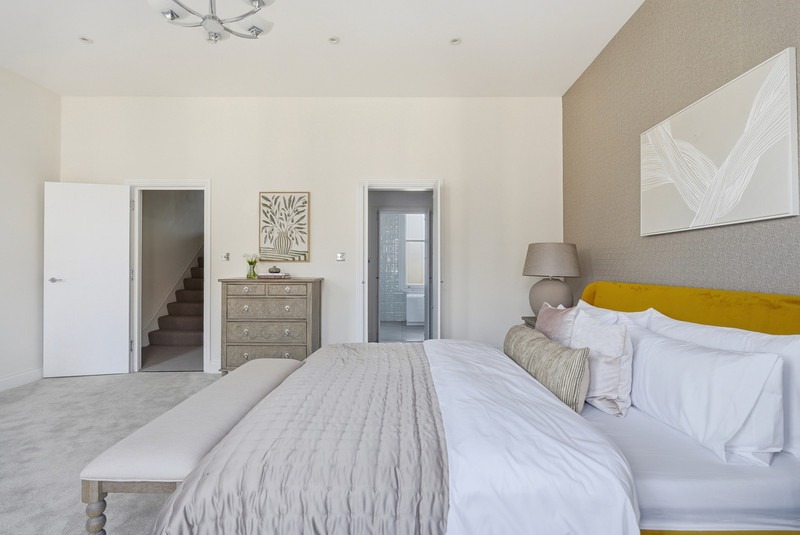 The property comprises four well-proportioned bedrooms, each offering a calm and comfortable retreat. The principal bedroom provides generous space and a refined finish, while the additional bedrooms are equally versatile, ideal for family members, guests, or home office use. Three contemporary bathrooms serve the property, all finished with modern fixtures, elegant tiling, and high-quality fittings to create a luxurious feel.