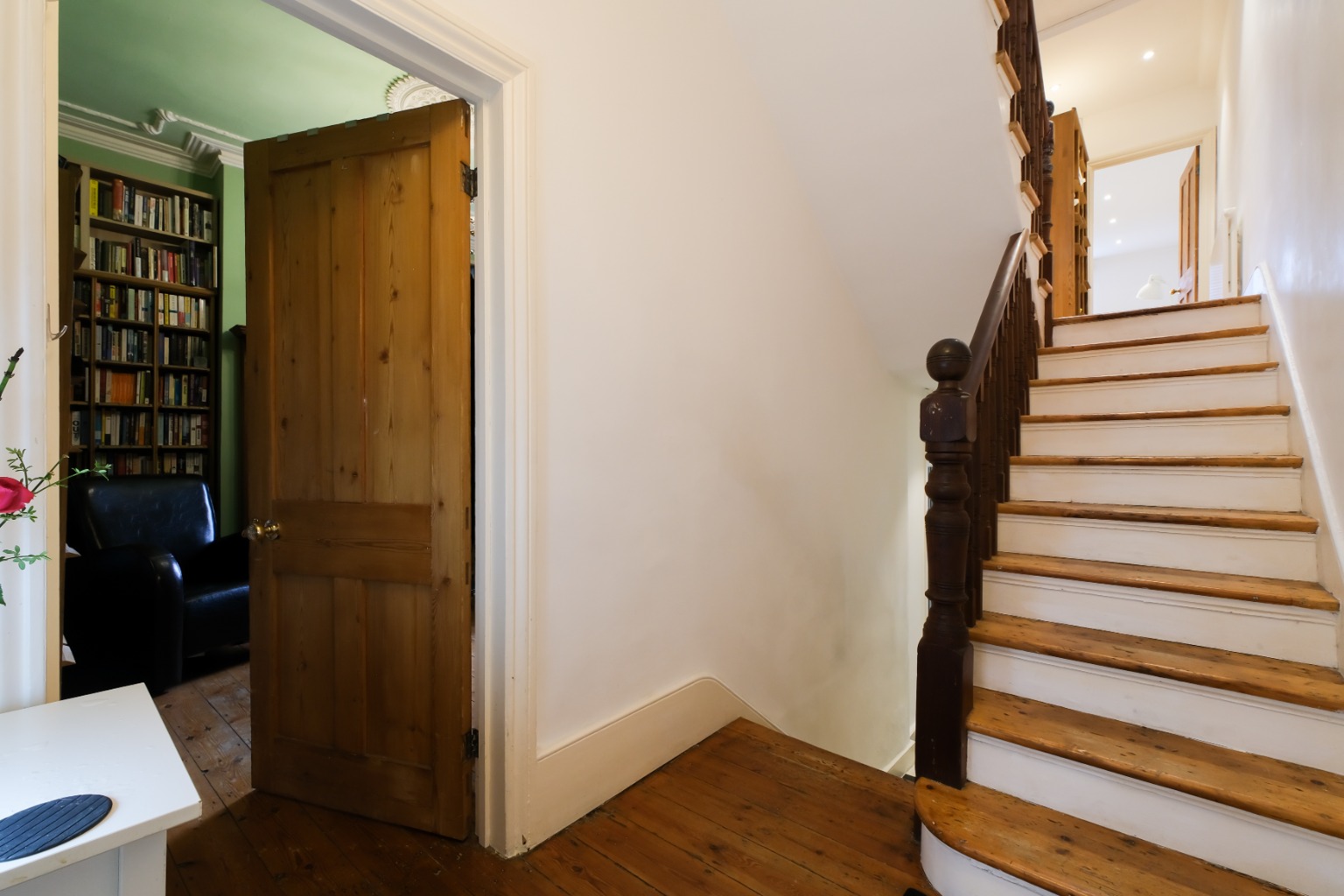 Rich with original period details, this wonderful house is beautifully presented and features three distinct ground floor spaces including two living rooms and a delightful kitchen/dining room with chequerboard floor tiles and doors directly onto the west facing garden.