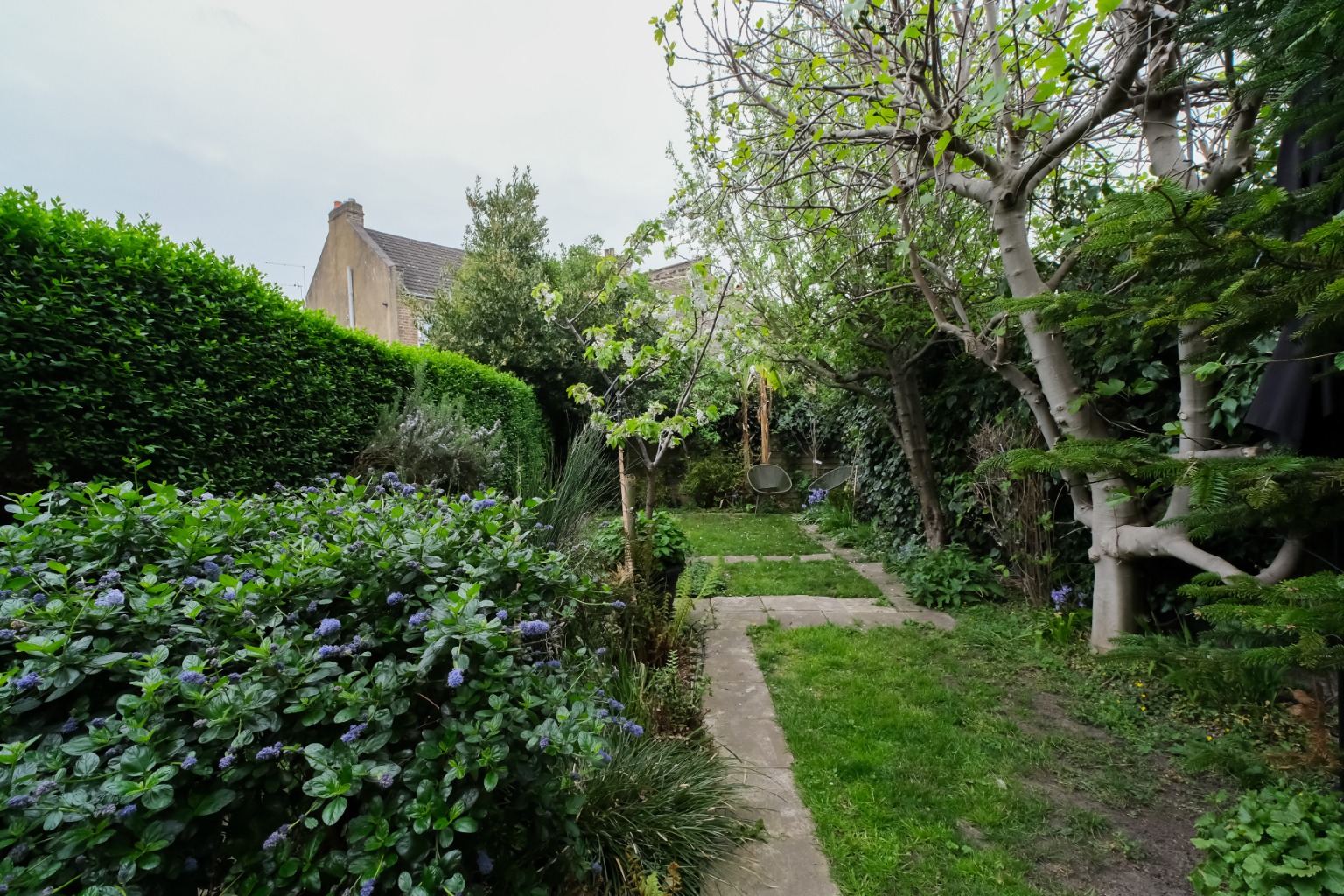The magical garden is a little piece of paradise with fruit trees and mature plants and shrubs. High hedges offer excellent privacy and the side return patio is a handy area for extra storage.